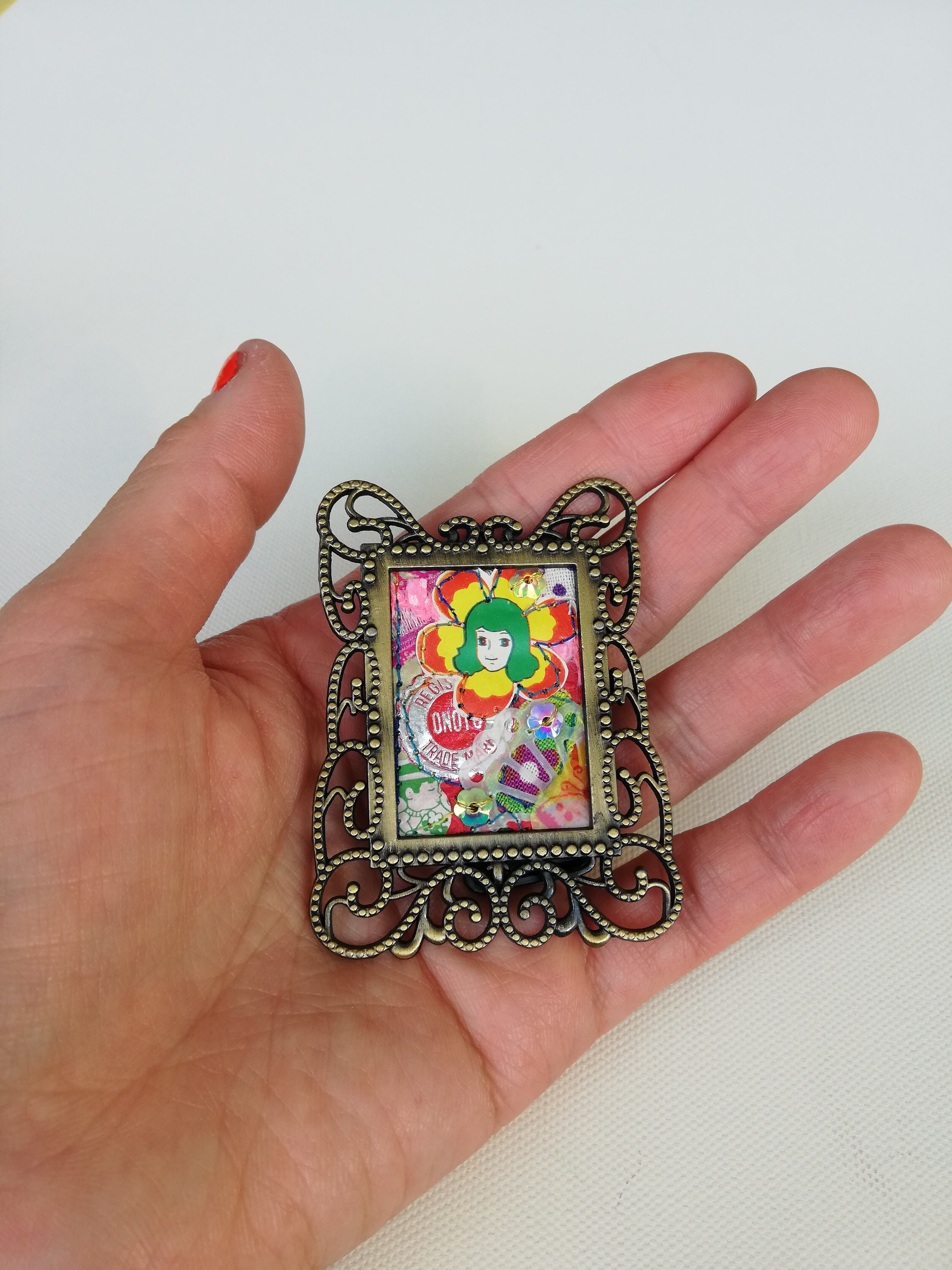 手のひらサイズのミニミニコラージュ額縁入りです。